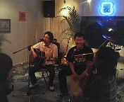 画像は松本と山下。今回は一曲目に「部屋」をアコースティックバージョンで演奏。本番前はどうかなー?って疑ってたんだけど、いざ聴いてみるとなかなかこれがよかった。ちなみに楽器はアコギとカホン。